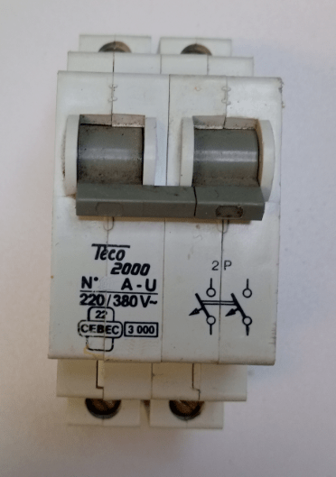 1 disjoncteur TECO 2 pôles, 20A ou 25A au choix, pour la protection du réseau électrique contre les surcharges et courts-circuits.