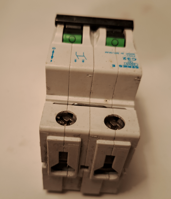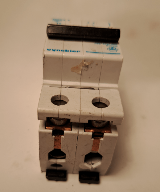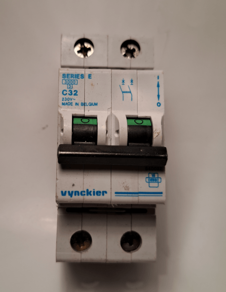1 disjoncteur Vynckier 2 pôles pour la protection du réseau électrique contre les surcharges et courts-circuits.