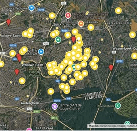 Entre la place Dumont et l’avenue de Tervuren (axe Orban–Madoux), sur 4 km² : 89 nids recensés