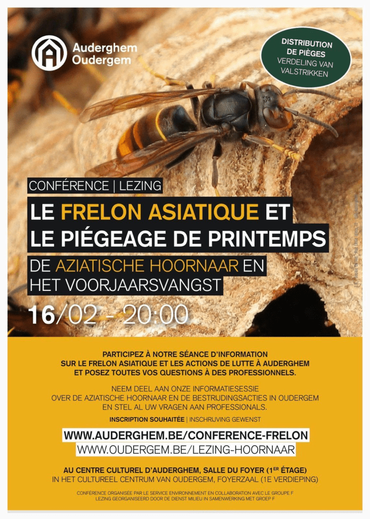 Ce 16 février, à 20h00, la commune d’Auderghem organise une séance d’information – conférence à propos du piégeage de printemps du frelon asiatique au Centre Culturel, salle du foyer à l’étage.